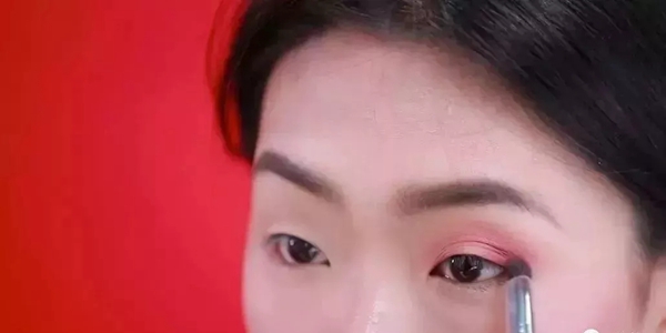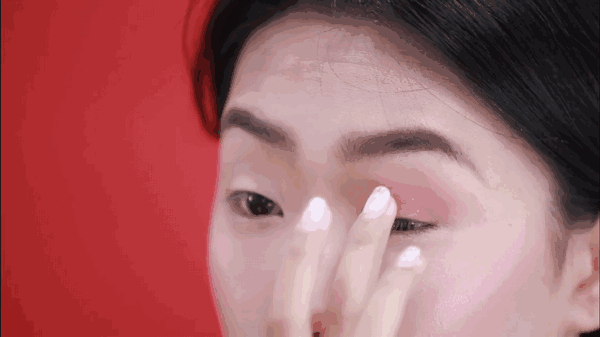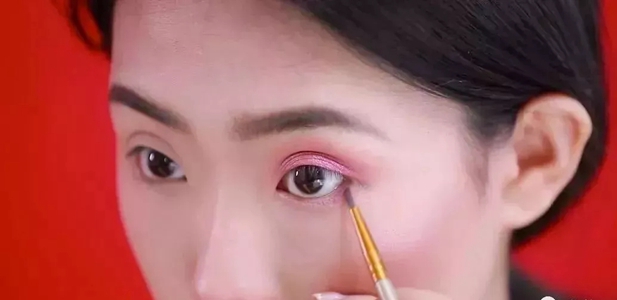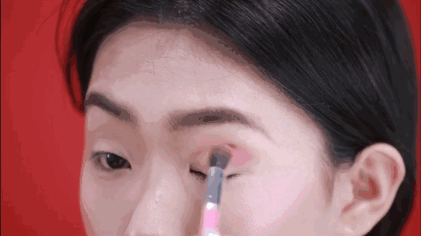 用干燥玫瑰色加深下眼窝和内外眼角,并来回轻刷,加深双眼皮褶皱,显得眼睛更加深邃。