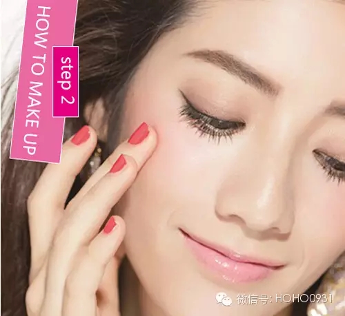 STEP1:要打造出白里透红自然感的腮红,一定要在底妆上多下功夫。选择光泽感滋润感强的饰底乳,用干净海绵粉扑轻拍于面部,让肌肤呈现出光洁透明的质感。