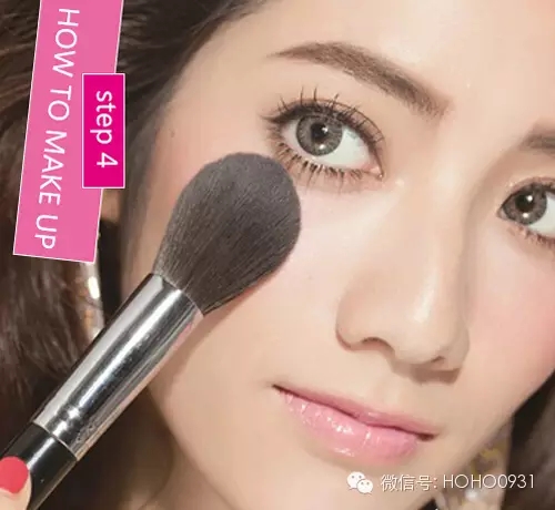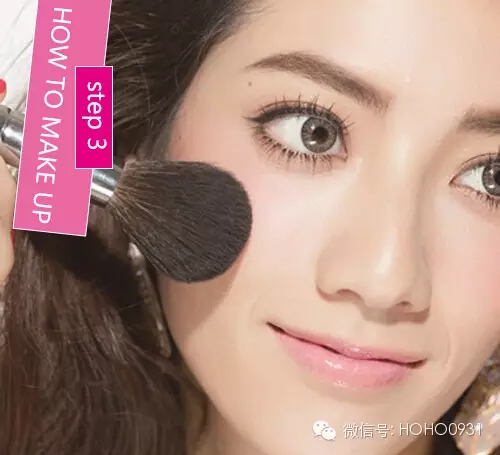 STEP3:为了让膏状腮红更加持久,让妆效更加自然,用蜜粉刷沾取少量的透明蜜粉轻轻扫过涂抹腮红的部位。让腮红看上去就像是肌肤里面透出来的红润。