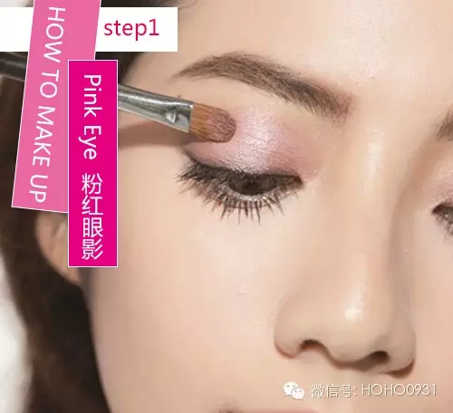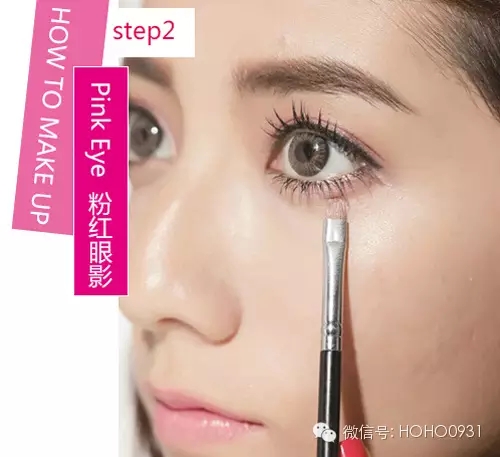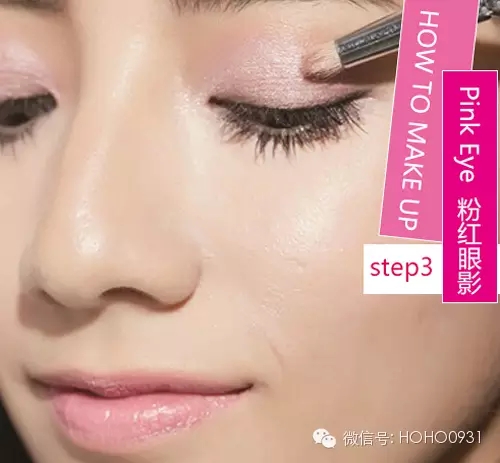STEP2:下眼影同样是用粉红色为主色调让眼部的甜美度更高,也让眼周肌肤更明亮。