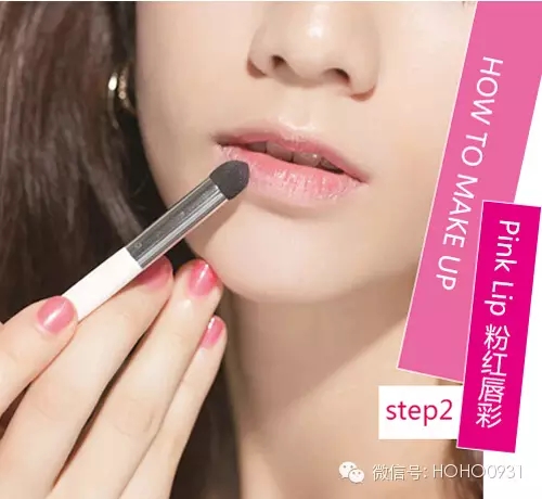 STEP2:用唇刷将第一步画好的唇膏向外晕染,依然是将唇部中央作为重点,唇周颜色偏浅。
